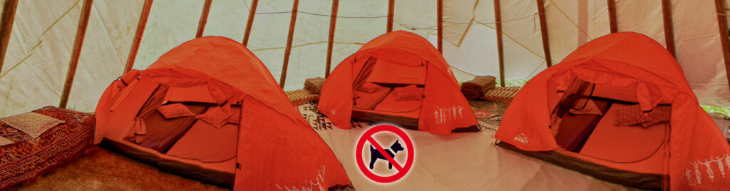 3 Innenzelten mit je 3 Schlafplätzen Matratzen und Kissen.